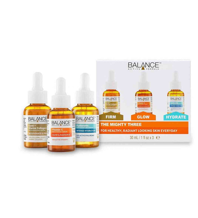 حاوی: پک 3 عددی سرم پوست بالانس شامل (سرم هیارونیک اسید .ویتامین سی و طلا )