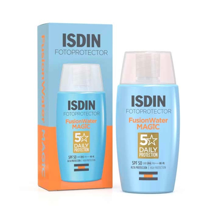 ضدآفتاب ایزدین فیوژن واتر مجیک یکی از انواع ضدآفتاب های برند ایزدین است که بافتی فوق العاده سبک و زود جذب روی پوست داشته و برای استفاده روزانه ایده آل است این ضدآفتاب علاوه بر محافظت بالا از پوست در برابر اشعه مضر نور خورشید با spf50 پوست را رطوبت رسانی کرده .چربی آن را کنترل میکند و دارای خاصیت آنتی اکسیدانی است .ضدآفتاب ایزدین مجیک برای پوست های چرب آیده ال است فاقد روغن های معدنی است جلوه ای کاملا مات روی پوست دارد و احساس چربی و سنگینی ایجاد نمی کند.