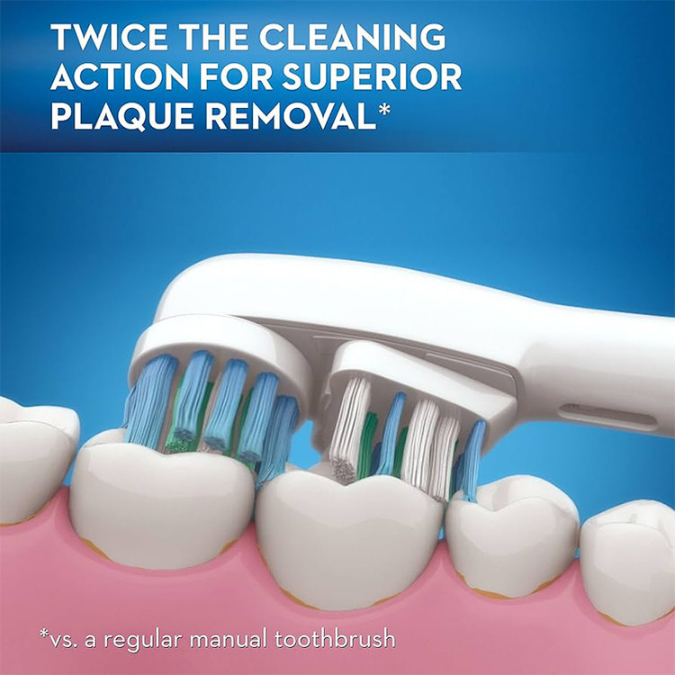 سری Dual clean با طراحی منحصربفرد دوگانه شامل دو برس متحرک است که همزمان عمل میکنند.برس بالایی با حرکت چرخشی -نوسانی پلاک ها و جرم های سطح دندان را از بین میبرد و برس پایینی با حرکت لرزشی باعث پاکسازی عمیق تر و ماساژ لثه میشود.توصیه میشود هر 3 ماه یکبار یا درصورت ساییدگی الیاف سری مسواک تعویض شود