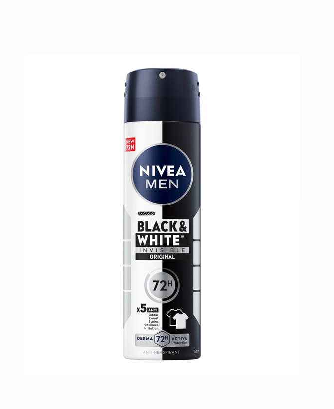 اسپری ضد تعریق مردانه Invisible Black & White Original نیوا با عملکرد پنج کاره خود ، ضد بو، ضد عرق، ضد لک، ضد سوزش و حساسیت و بدون باقی گذاشتن اثری بر روی لباس میباشد فرمول خاص این اسپری باعث میشود تا بعد از استفاده دیگر لک سفید روی لباسهای تیره و لک زرد روی لباسهای روشن خود که بهخاطر عرق کردن است مشاهده نخواهید کرد. فرمول مخصوص توسعهیافته اسپری ضد تعریق نیوآ باعث میشود تا بعد از استفاده سریع روی پوست خشک میشود. .